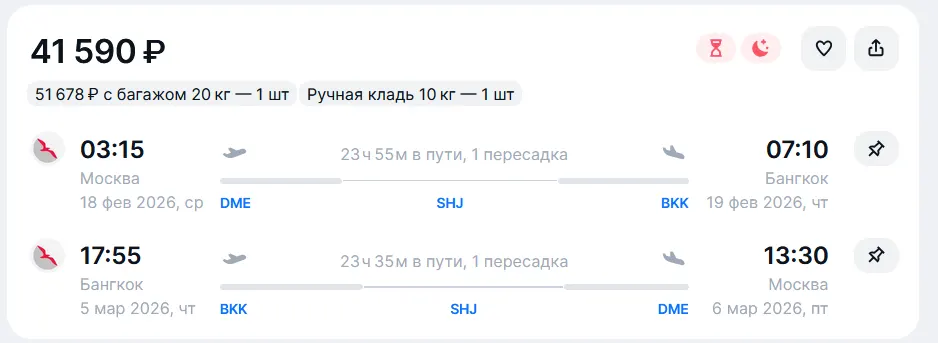 ✈️ Москва – Бангкок – Москва, 41 590 рублей, туда и обратно, с багажом. Проверяйте разные даты.